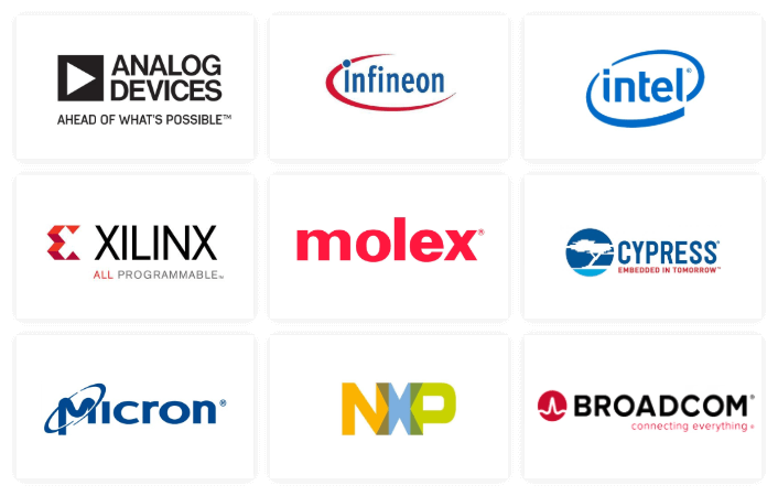 自成立以来,不断与世界知名品牌建立稳定的合作关系以获得高品质的产品库存 ,满足客户对各类电子元器件的需求!优势品牌有:Infineon, ADI, Nxp, Xilinx, Intel, Molex, Cypress, Micron, Broadcom等